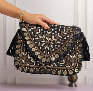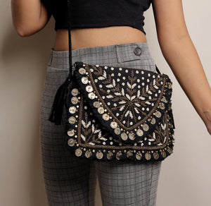 Black Majesty|| Hand Embroidered Boho Sling Bag