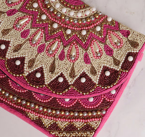 Beaded Pink|| Hand Embroidered Boho Sling Bag