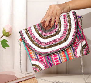 Bella Pink|| Hand Embroidered Boho Sling Bag