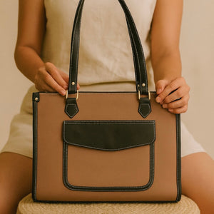 Canelle Tote is crafted in rich canvas with sleek leather accents and gleaming gold hardware. Its spacious silhouette and refined structure make it the ultimate blend of function and finesse. Lightweight yet durable, it’s designed to carry your world in style — from workdays to weekend escapes.