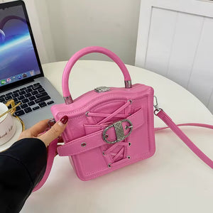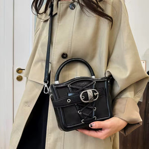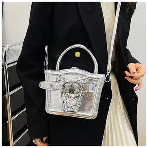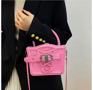 Turn every outing into a runway moment with the Corset Charm Bag – where elegance meets edge. Crafted with a structured silhouette, this statement piece features chic lace-up corset detailing and a bold metallic buckle that adds instant glamour. The versatile top handle and detachable strap let you carry it your way – as a handbag or crossbody.
