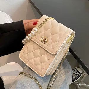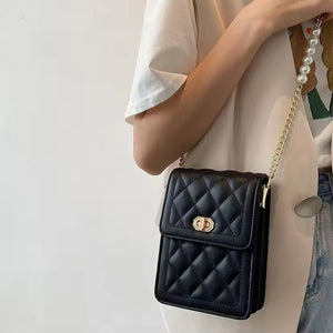 The Quilt me Preety Bag brings timeless elegance with a modern twist. Featuring a luxe quilted design, pearl-detailed chain strap, and gold-tone clasp, it’s the perfect accessory to take you from day to night in effortless style.