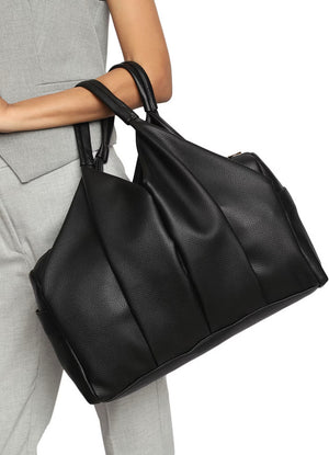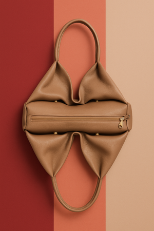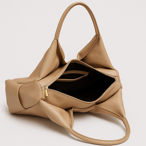 A sculpted tote designed with bold folds, premium pebbled leather, and spacious interiors. Elegant, versatile, and timeless.